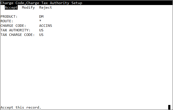 3. Select Accept to accept the tax authority for this charge code, product and route.