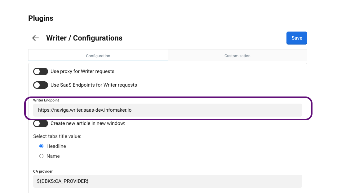 and add Writer endpoint url,