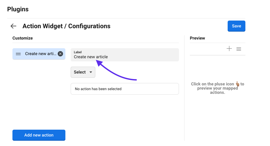 Click on "Add new action" to start the addition of a new action