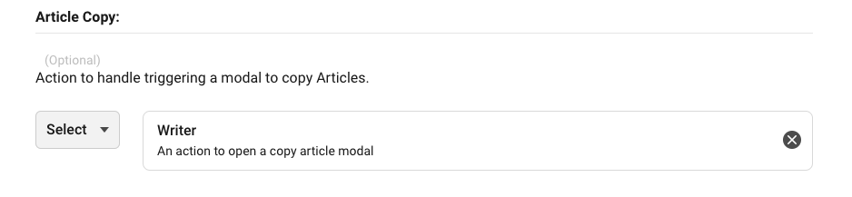To enable the Copy Article feature in various plugins, the Writer plugin is needed, and configuration needs to be handled in advance.