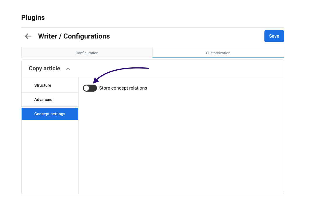 To enable the Copy Article feature in various plugins, the Writer plugin is needed, and configuration needs to be handled in advance.