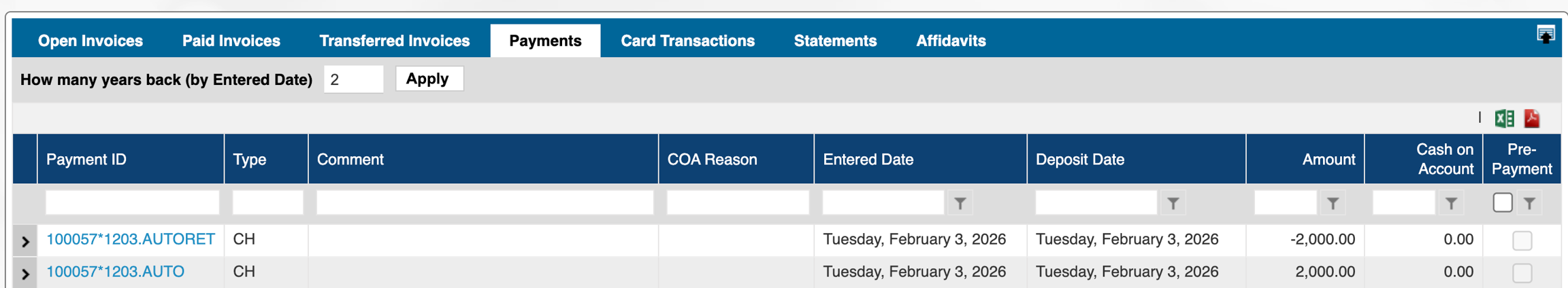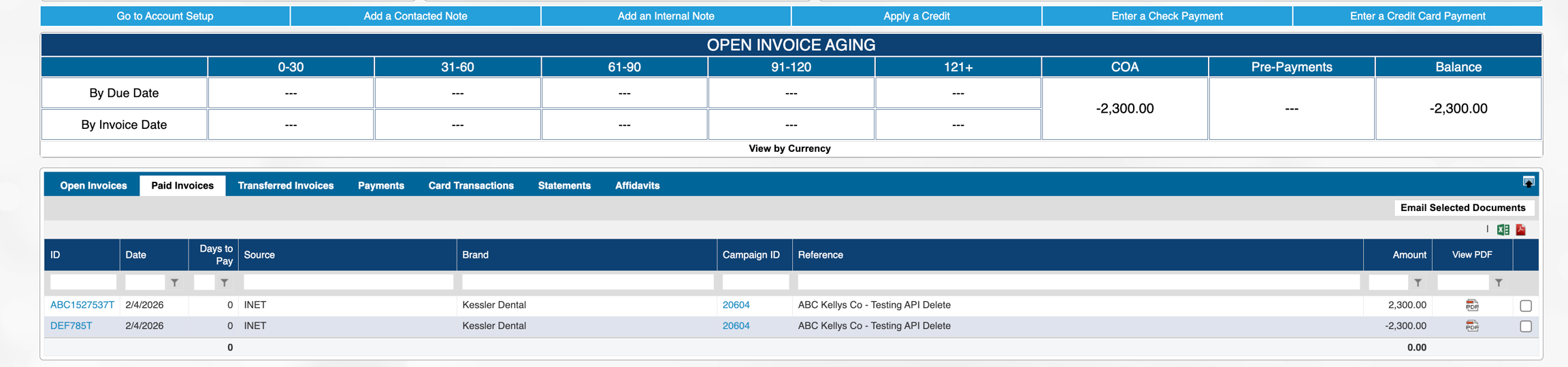 The Original invoice and the credit memo are here on the Paid invoices tab, since the CM was used to pay for the invoice