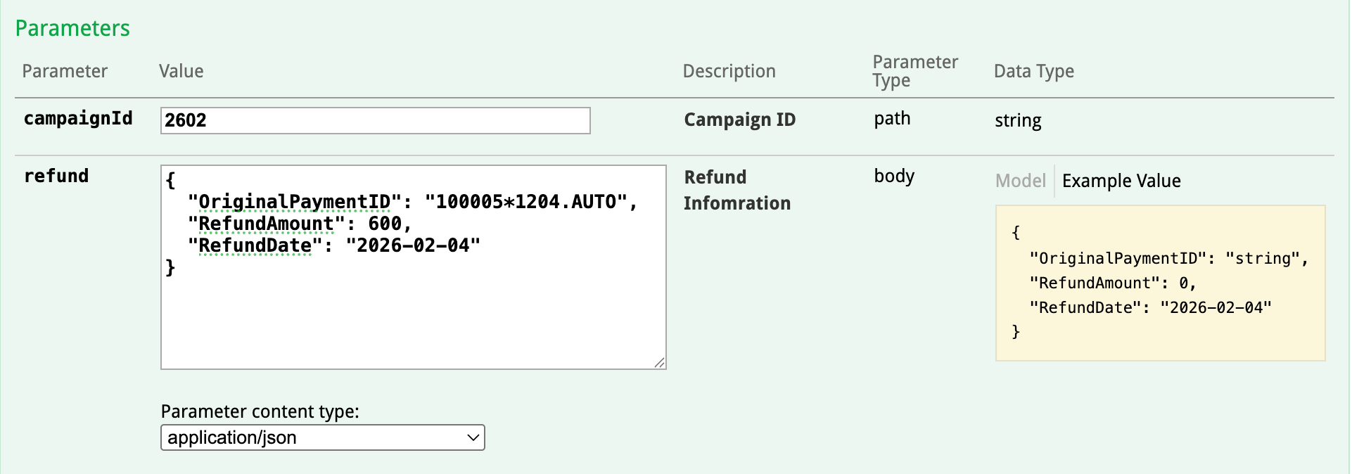 Following on from the previous example under "Stop a Campaign" the refund for that would have been as follows: