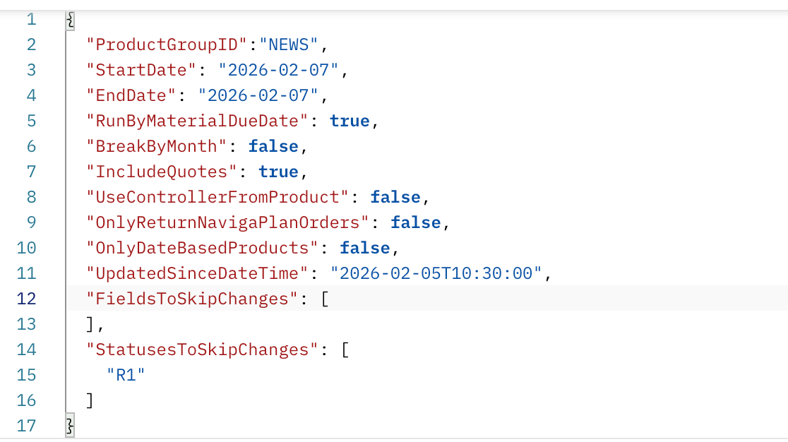 The above means that I would want to return anything that has changed since 1:25 pm on Jan 20, 2026. If the below "SkipChanges" parameters are included the items might be further filtered to exclude certain types of changes, for example, if the campaign was updated with billing or tearsheet information, it is unlikely to be desirable to re-output to a production system, but if it is Issue Data (which includes size changes & additional issues added) - that would be very important to send to a production system.