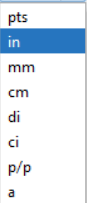 In the depth and width boxes, select desired units for viewing sizes in the system. The following options are available: