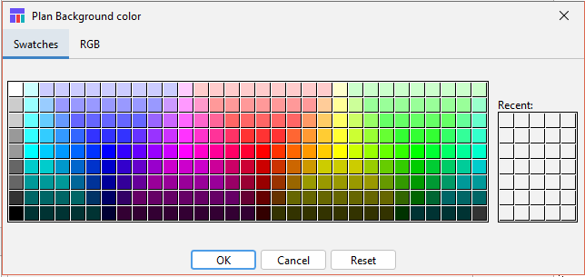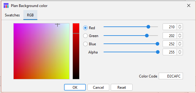 You can also select the background color for Naviga Plan. Click on the color box and a dialog will open to allow you to select your color. Choose from the preset swatches or go crazy with the RGB settings. Example can be seen in the background of the GUI Settings screenshot above.