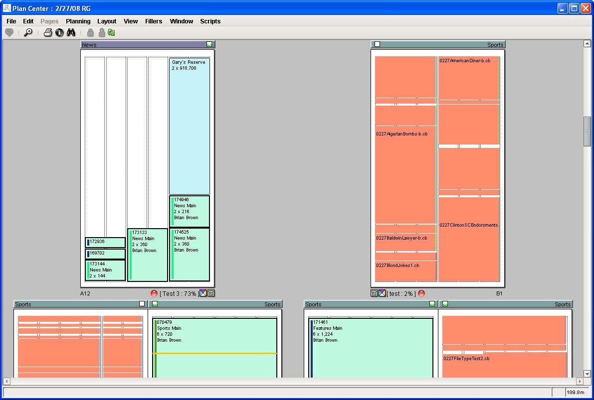 A plan consists of one or more-page sets, each of which contains one or more pages. Naviga Plan marks each page set with a colored bar at the top of every page in the set. Page sets frequently correspond to a portion of the newspaper, such as the sports section or feature section, though the content sections in most publications - such as Sports, Metro, Style or Living - may include more than one page set.