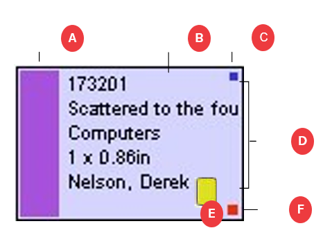 Indicates the site’s designation of the page’s progress. The color depends on the status. See Understanding status indicators in the Plan. The color appears as a square around the Page Set Letter and page Number.