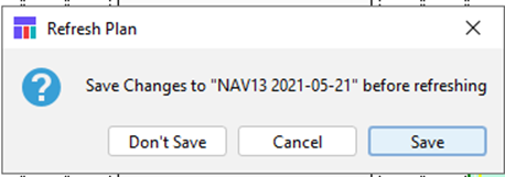 If there are any loading errors, the Loading Errors box opens. See Dealing with loading errors. If you have made any changes to the plan, the Refresh Plan dialog opens.