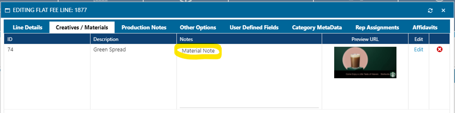 Displays both the placement and the production notes for the ad (it concatenates them into a single field.
