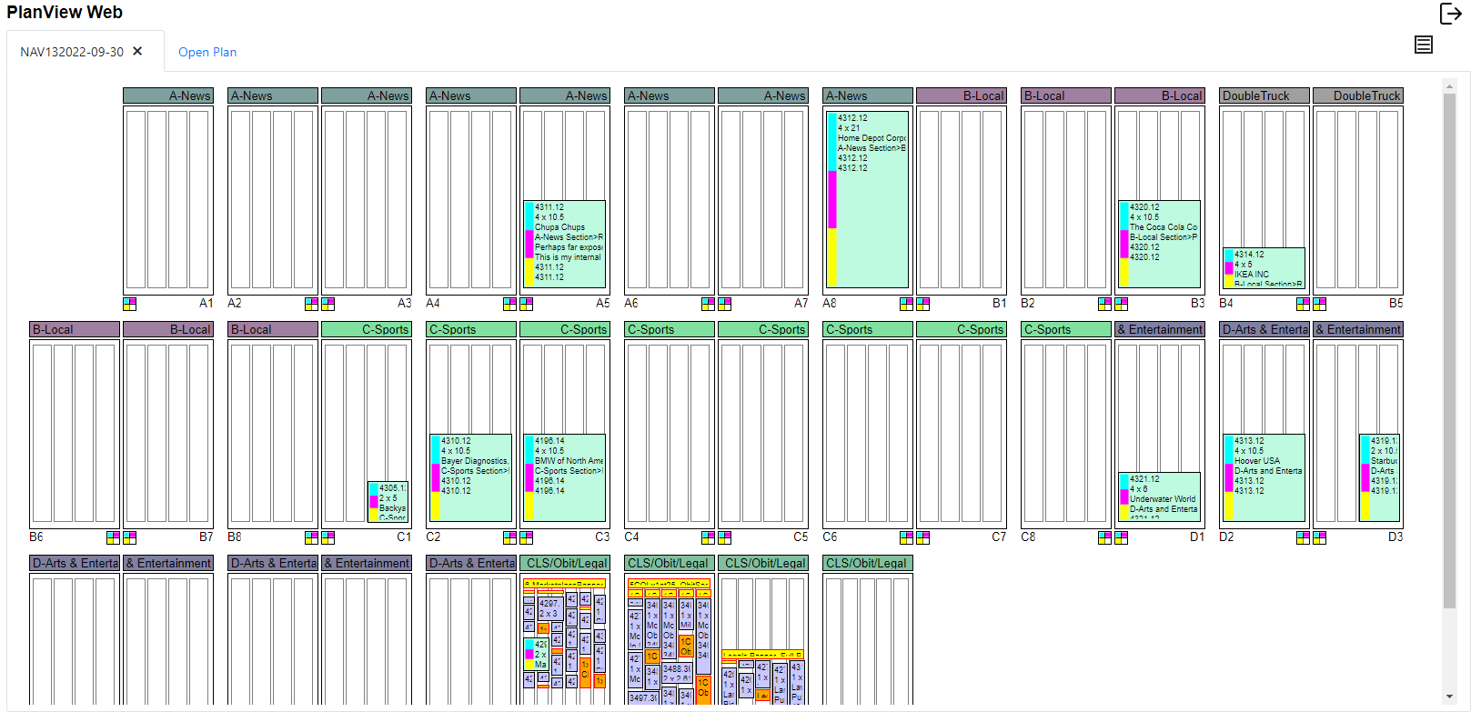 Naviga Implementation or Support resources will install Plan View upon request or Plan View Web if your contract allows for it. In the back end setup, there is a config file which controls the fields that are able to be seen and the order in which they are presented. These are currently the options available: Ad Name (This is the Naviga Ad Order ID (ie. 12345.1), Campaign ID, Campaign Description, Ad Size, Customer Name, Customer Brand, Sales Rep Name, Classification, Production Notes, Placement Notes, Material ID, and Copyline.