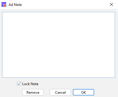 Select the note icon and choose File -> Notes. The note dialog box opens.