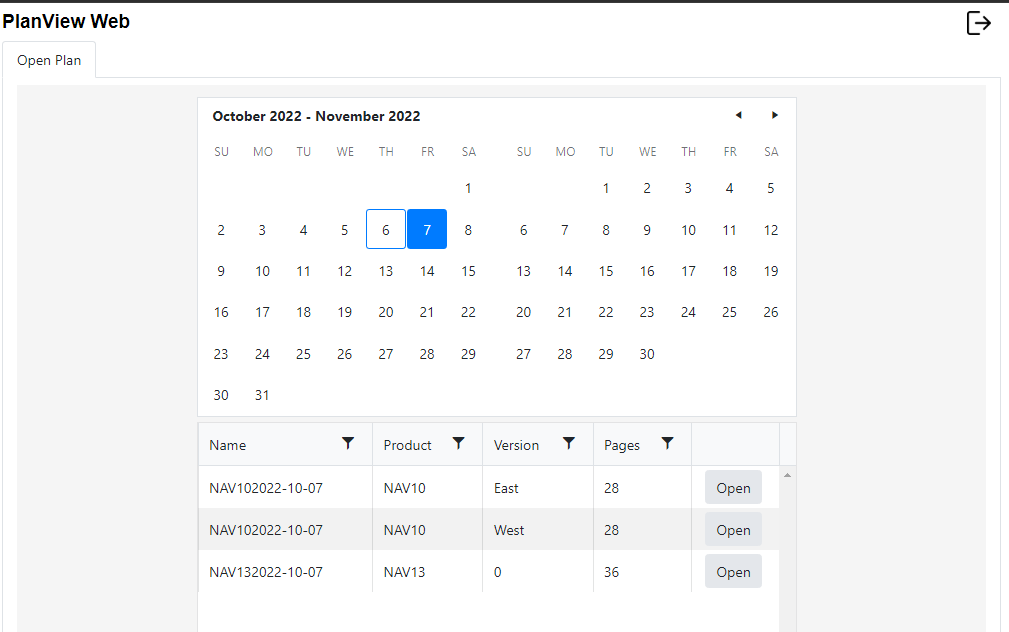 First you log in with a user / password set up in Naviga Plan. This user will not have a workspace, so he/she won’t be able to access plan itself, but the same user and password setup is also used for Plan View Web. Once logged in, the user will select the issue date and product they wish to view and click open: