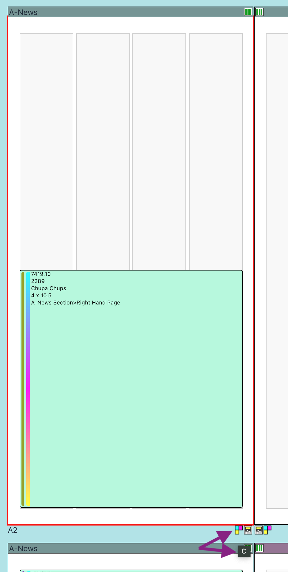indicates that the page has at least one color on it. Hover over the icon to see which color(s) are assigned to the page. If the icon is missing, then it is a black and white page.