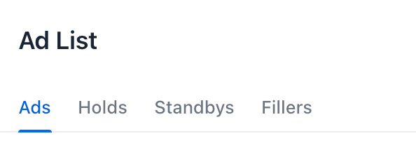 The Standbys panel: A list of all ads that are on standby.