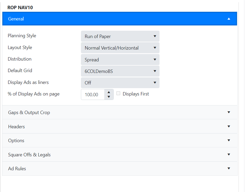 Planning Style will tell Naviga Plan how to flow Classified ads. If it is a Display ad pagination rule then simply select Run of Paper from the drop down and plan will look instead at the “Layout Style” to determine how to stack the ads.