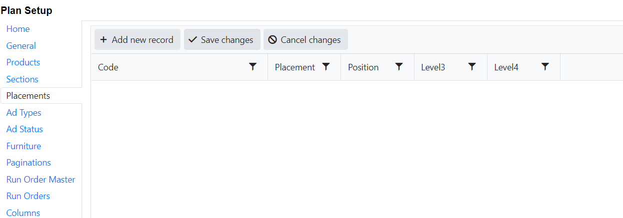Placements are only used when NCS Advertising is the source system. This links the NCS Advertising Placement/Position/Level 3/Level 4 to a section in Naviga Plan.