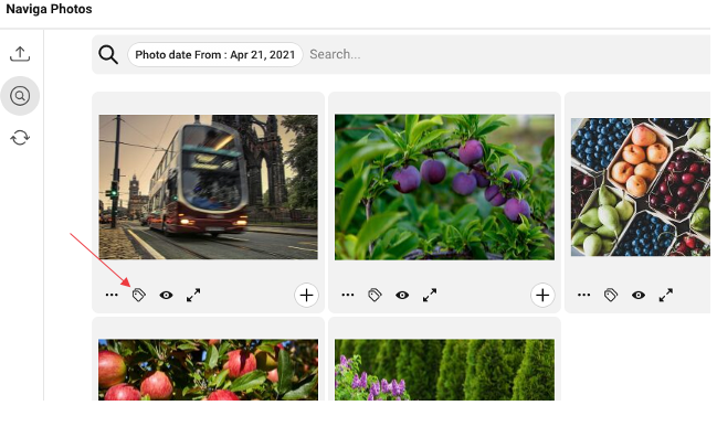 You can preview the metadata of the photo by clicking on the tag-icon, or press M if you use keyboard navigation.