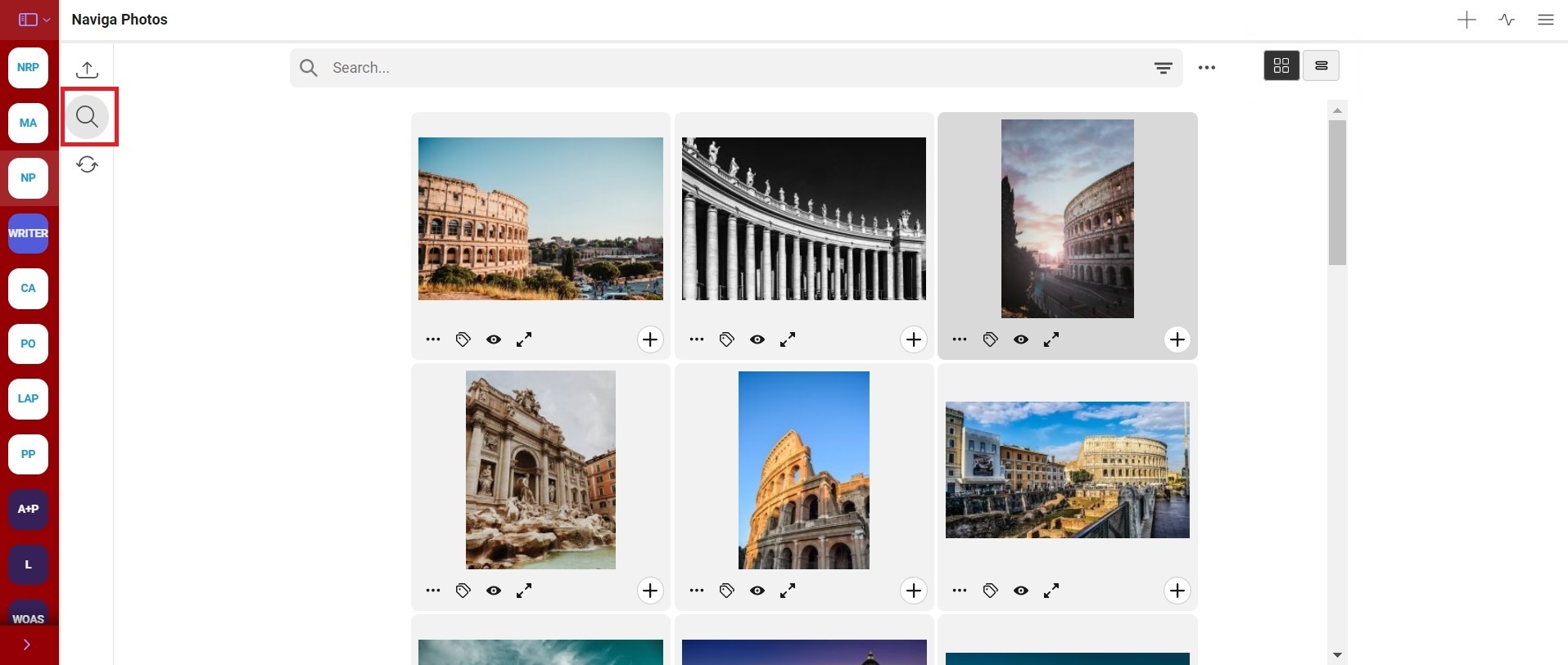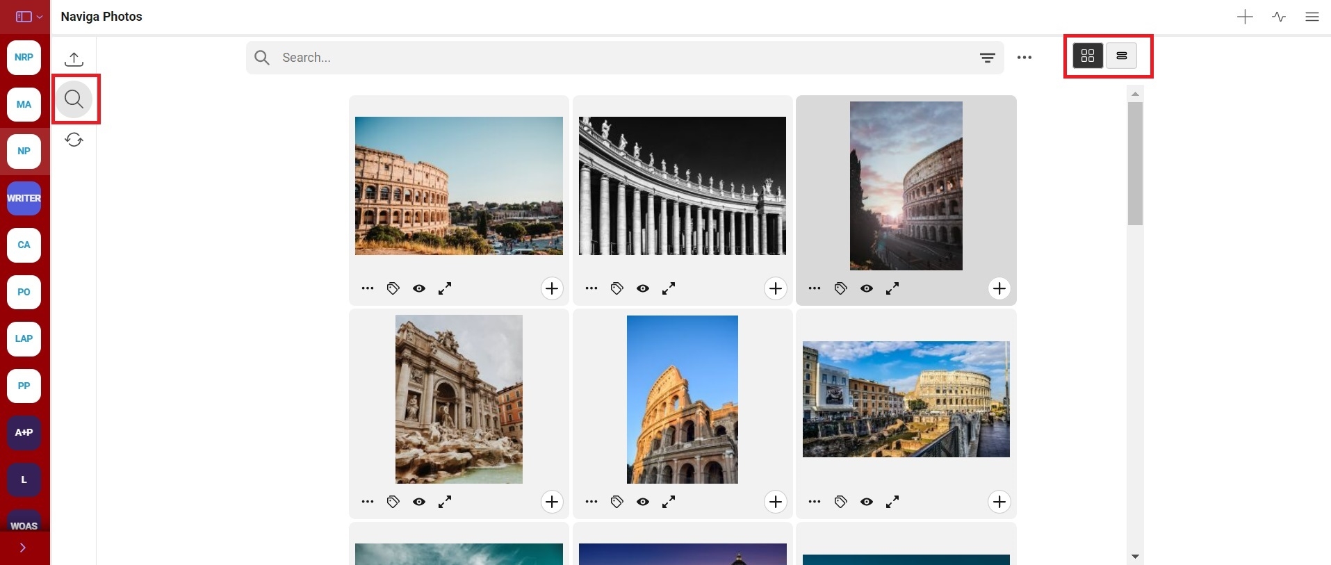When the grid view is selected from top right icon (near the search tab) then photos are available in grid view shown below.