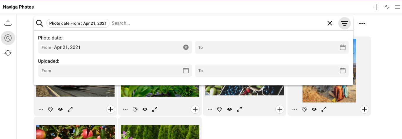 You can choose to search for two different types of date. The date when the photo is uploaded to Naviga Photos, or the actual photo date.
