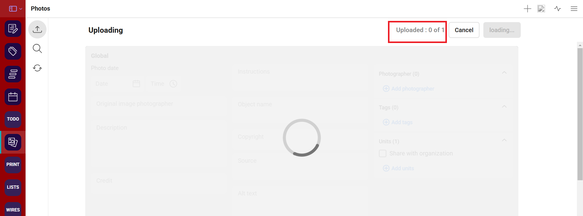 The photo misses required metadata. You need to add the missing data before you can upload the photo.