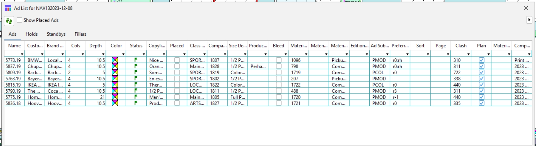 Select “show ad list grid” and the ad list will appear with subtle lines between fields to make it easier to read. How subtle those lines are is very dependent on the contrast setting on your monitor, so we have also allowed for you to select the color you would like for the grid outline. In the screenshot above, a blue-green color was chosen of show a sharp contrast in the below image
