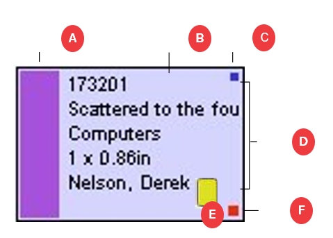Indicates the site’s designation of the page’s progress. The color depends on the status. See Understanding status indicators in the Plan. The color appears as a square around the Page Set Letter and page Number.