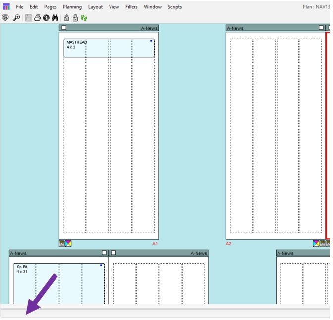 Naviga Plan provides paper planners and editors with a graphic representation of each page set in the plan, so they can easily see where ads have been placed on the pages. If using this in conjunction with NCS Content, you will also be able to see a read-only view of editorial stories on the pages.