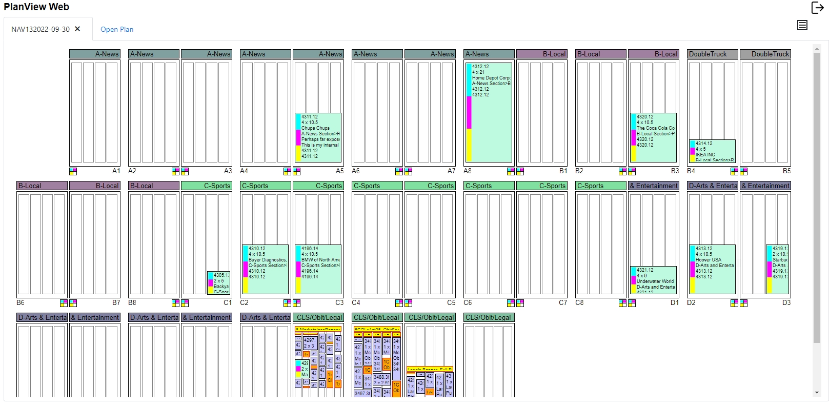 Naviga Implementation or Support resources will install Plan View upon request or Plan View Web if your contract allows for it. In the back end setup, there is a config file which controls the fields that are able to be seen and the order in which they are presented. These are currently the options available: Ad Name (This is the Naviga Ad Order ID (ie. 12345.1), Campaign ID, Campaign Description, Ad Size, Customer Name, Customer Brand, Sales Rep Name, Classification, Production Notes, Placement Notes, Material ID, and Copyline.