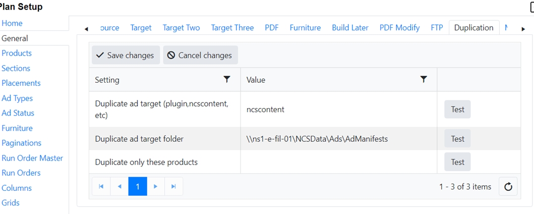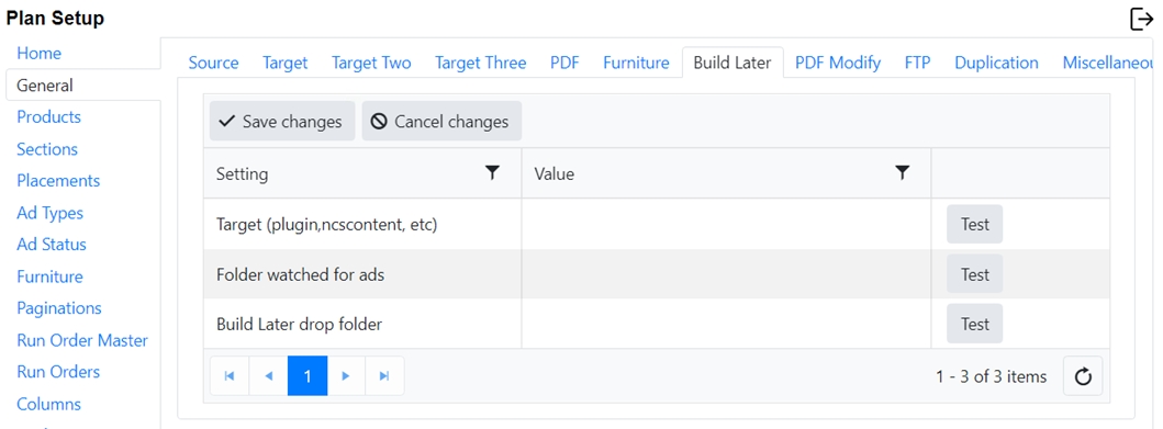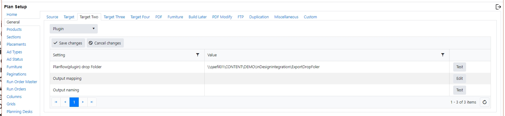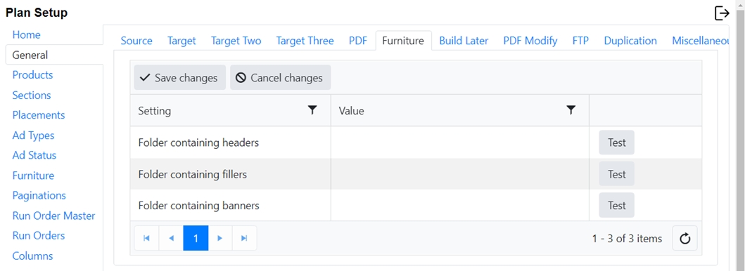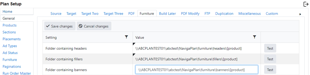 At the end of each line is a test button. This allows you to test to ensure that the folder exists and is accessible to the Plan Integration server.