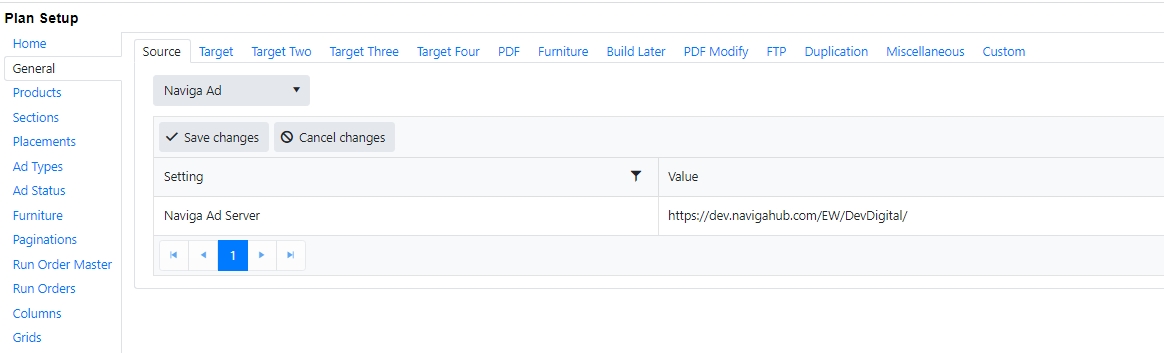 In a Naviga Ad implementation, the setting will be set as the URL for the Naviga Ad system. Plan Integration will connect to this sending system to receive orders booked and configured to be sent to Naviga Plan.