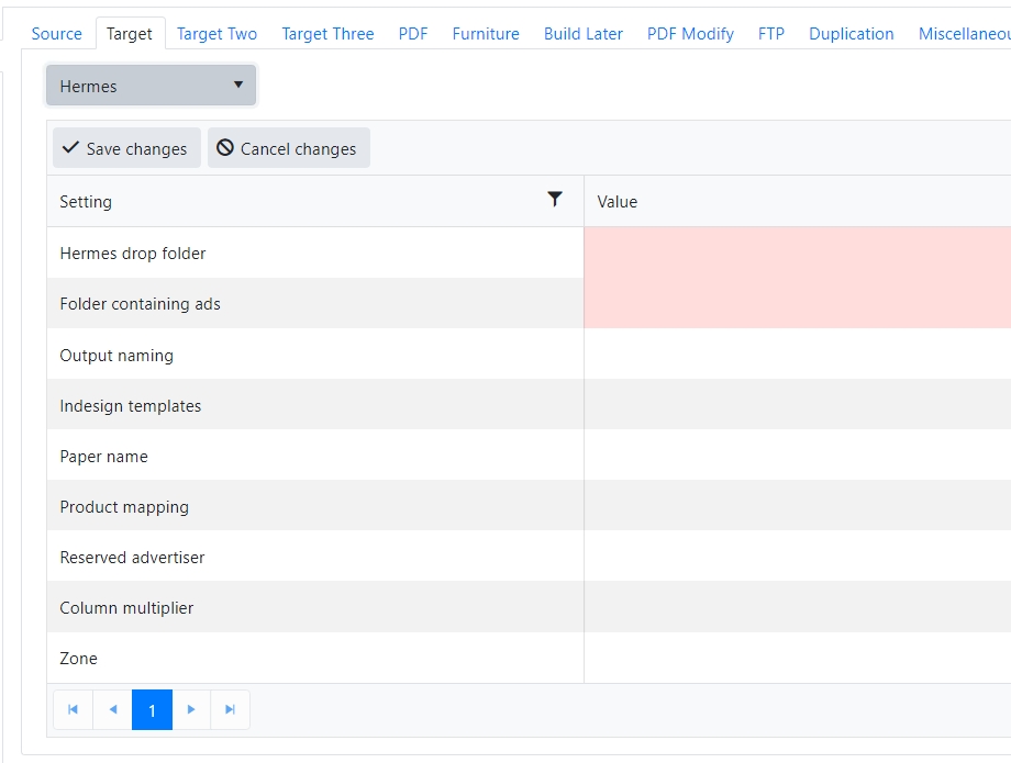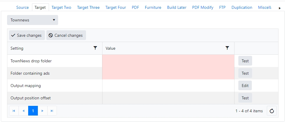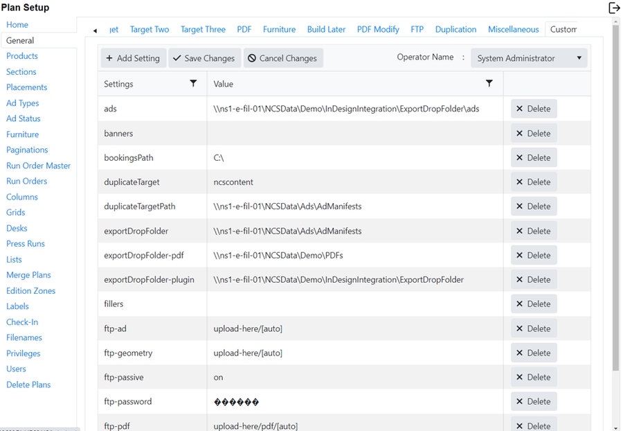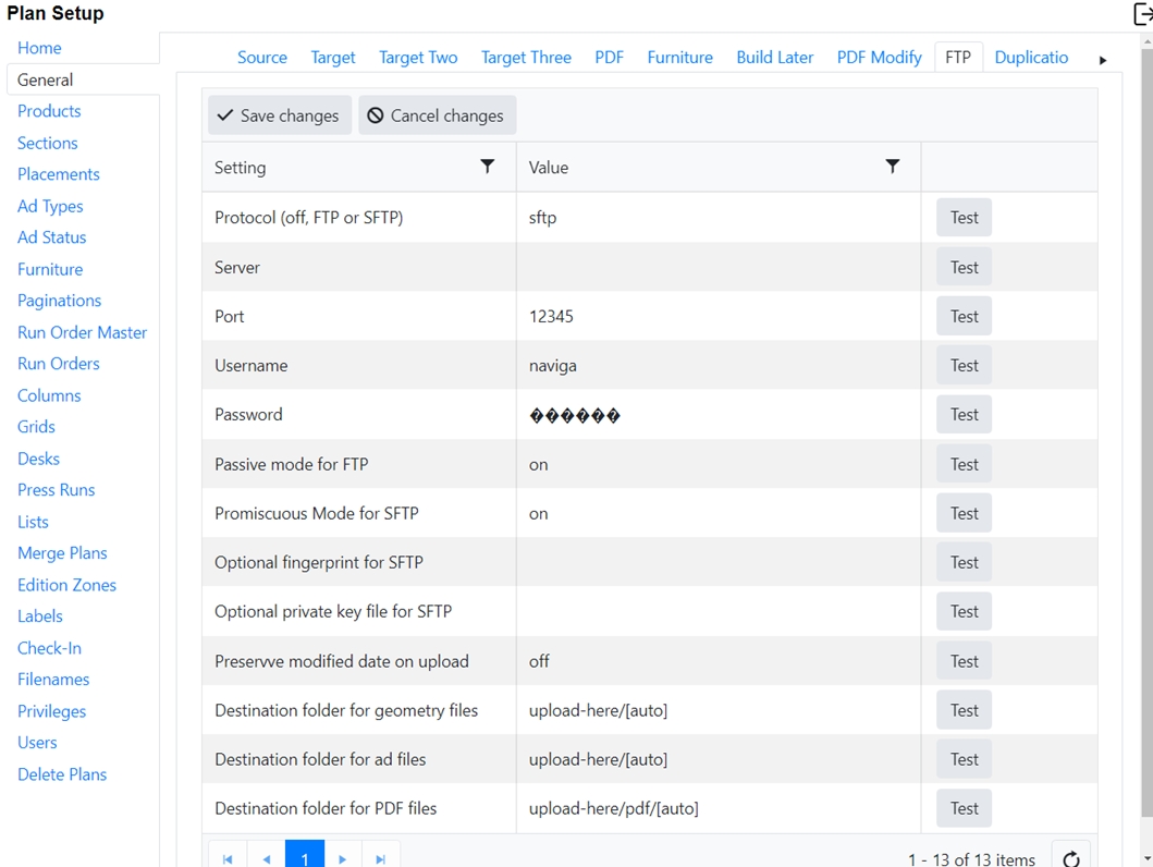 The settings needed vary by target system and Naviga implementation will work with you to ensure that we are outputting to the correct location and with the correct settings for your content system to properly receive the info. Generally, we are sending a PDL or XML file and the pdfs of the ads. Any fields that are required to be set up will be highlighted. If there is no highlight, it is either already filled in, or it is not required.