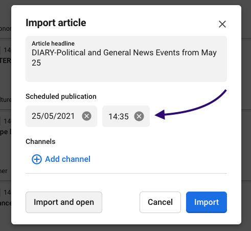 Default scheduled publication on import