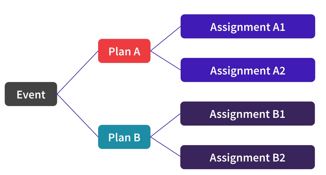 These three components are interconnected. At an event you add a plan, on a plan you add assignments. Further on in this manual, this will become clearer. (If you do not want to add a plan to an event you do not have to, but an assignment always needs a connection to a plan.)