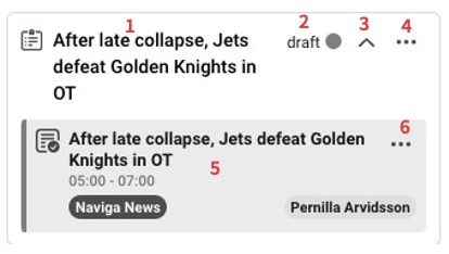 The difference in no 2 compared to no 1 is that there is already an article created on the assignment (1). There is also a photo assignment (2) that belongs to the same plan as your text assignment belongs to. In the case below, the assignee for the photo assignment is not you, but you can use the photos in your article, when the assignee has uploaded them to the assignment.