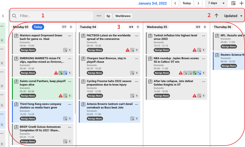 Possibility to filter among the cards.