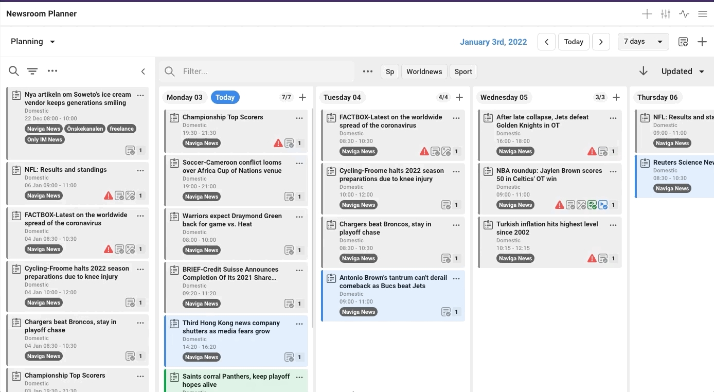 For example, on a planning card you can see that it has a specific color to indicate the status. You have icons that shows information about: