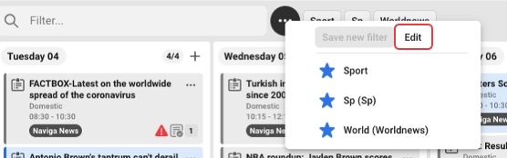 Edit saved filters