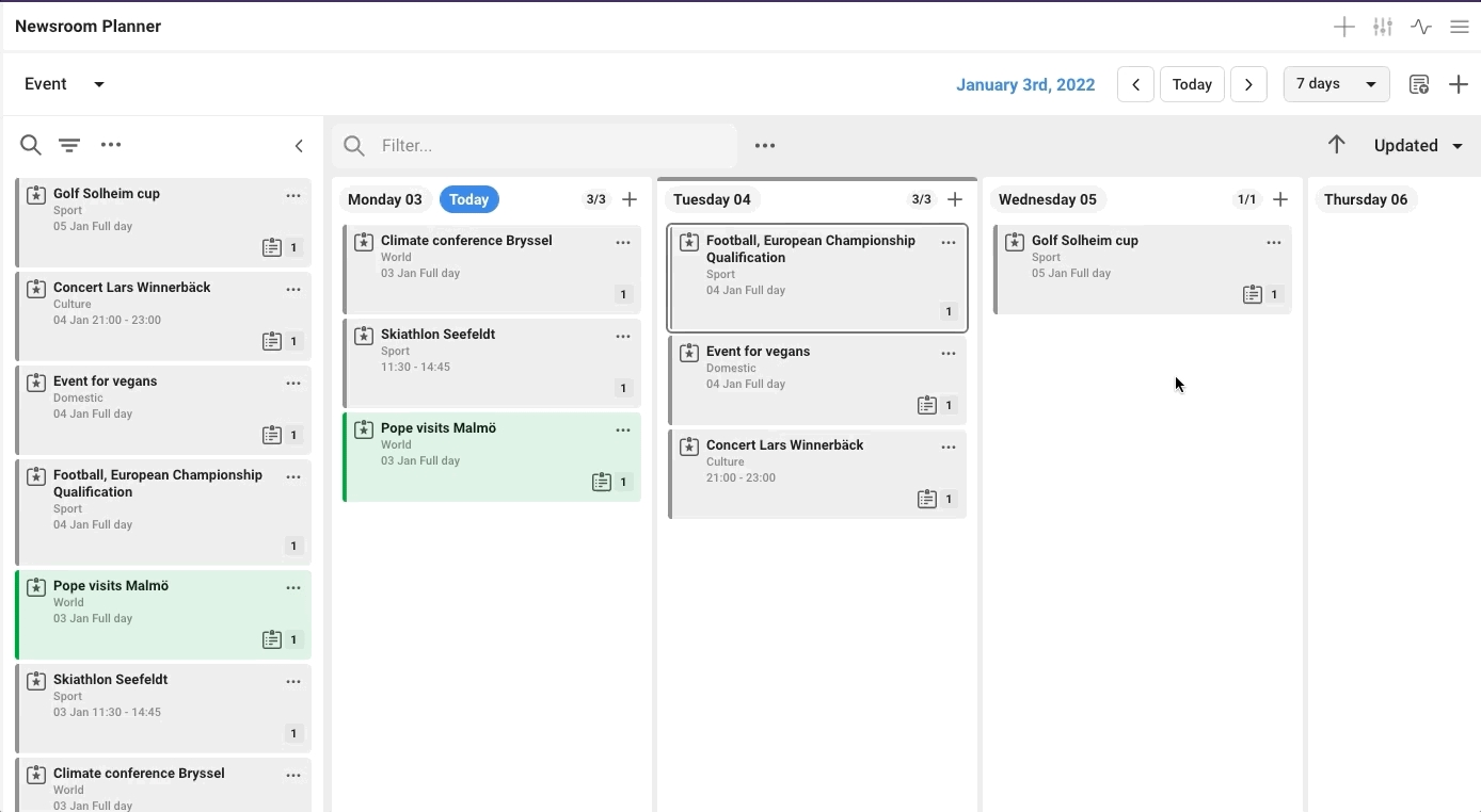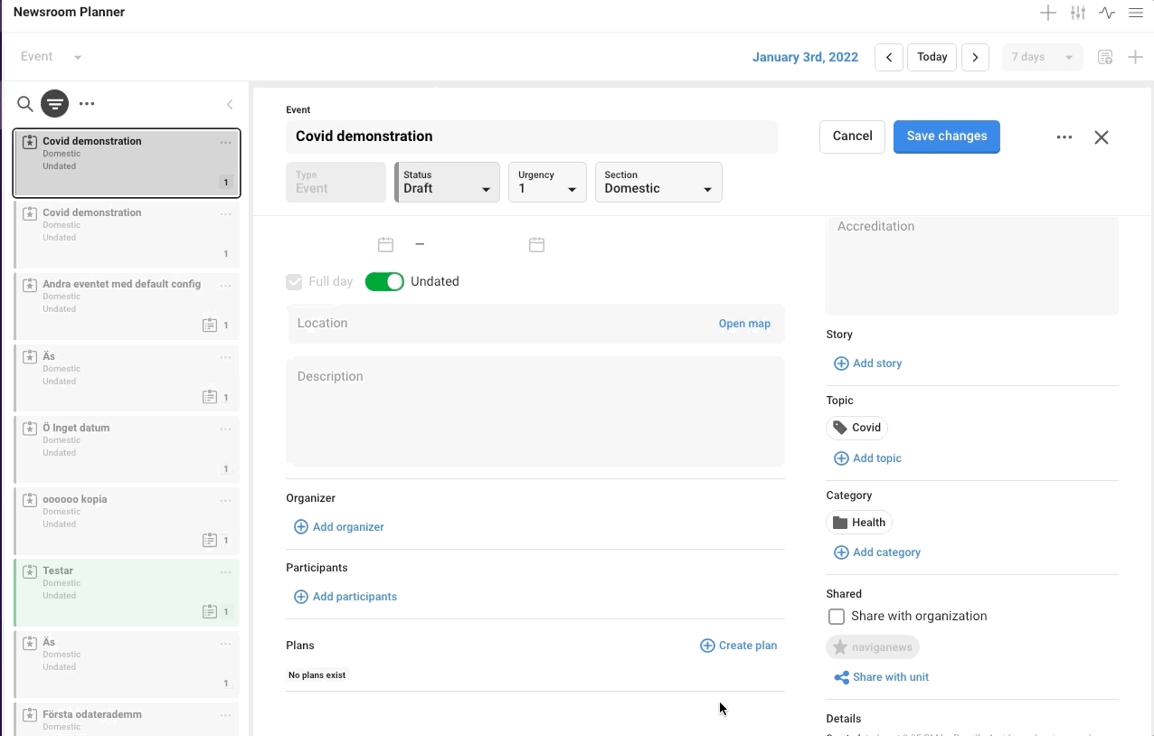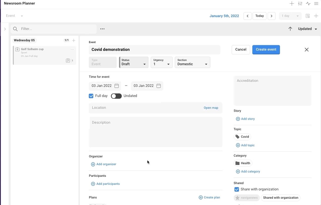 As soon as you hear about an event which sounds interesting, create it in the Newsroom Planner so you do not miss it.