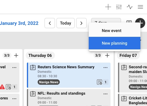 When you create a plan you can add it directly to an event. If you do so you get a clear picture of which events have or lack a planning. You can also create plannings without any connection to an event.