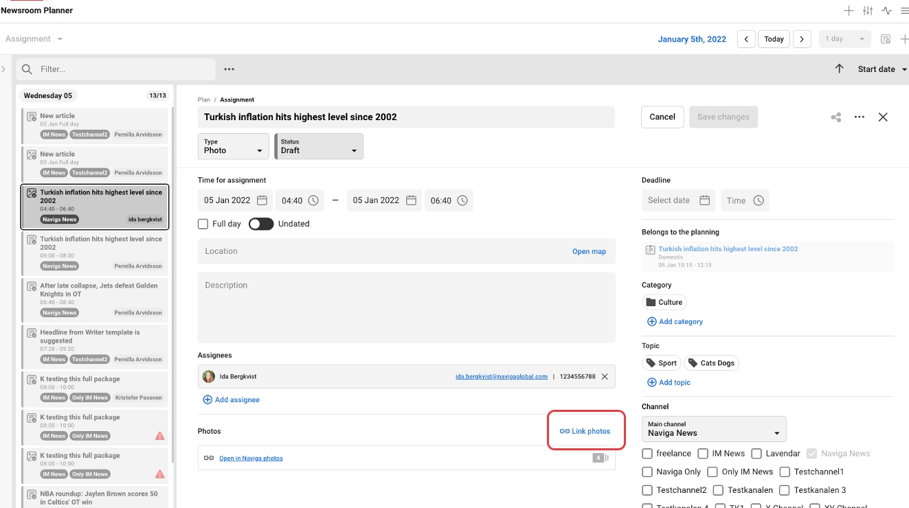 Thanks to Dashboard mappings you can replace Naviga Photos with your own image service portal and integrate your plugin into Newsroom Planner