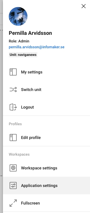 To be able to see this view of Newsroom Planner you have to make a setting in the workspace. Open the menu and click on Application settings.