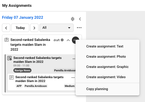 You can choose to make a setting in Newsroom Planner so you only see your own assignment. This view is called My assignment. This setting is made in the application settings.