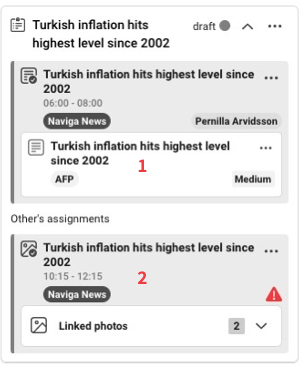An article is created. In the same plan, there is also a photo assignment but with someone else as the assignee.