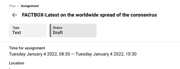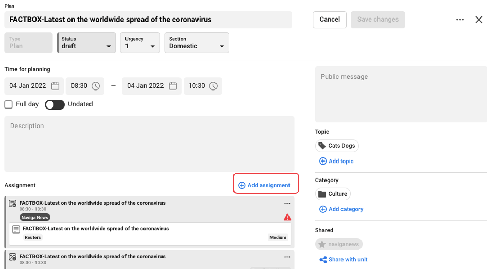 When you have added all the information you want to include, click on Add assignment and you will be back to the Planning card.