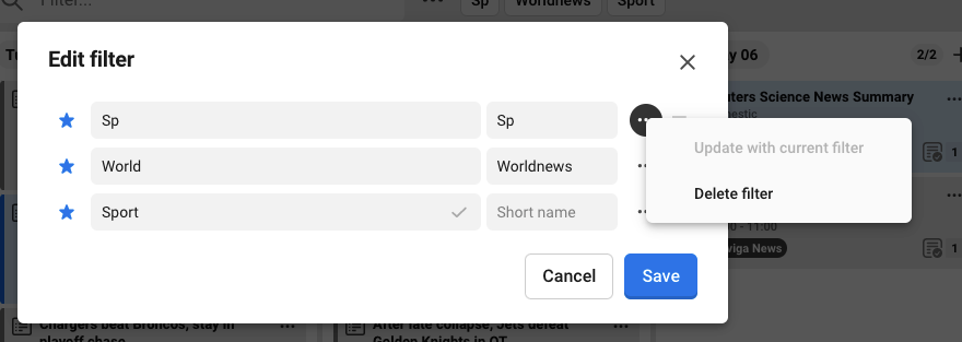 Edit saved filters