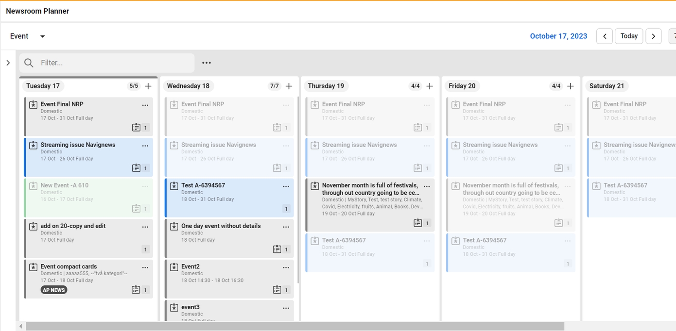 When NRP items (Events, Planning and Assignment) are spread over multi days then they are represented by dimmed cards that spread on each day of calendar.