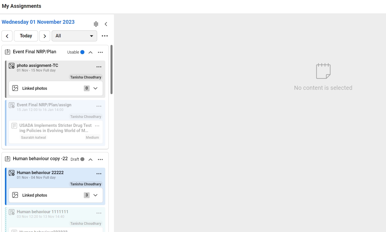 User can view the same multi-day view in My assignment. In this the dimmed card has been enabled for editing and linking the article/photo.