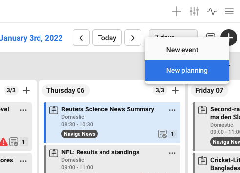Create a plan directly in the calendar for plannings