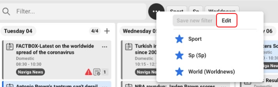 Edit saved filters
